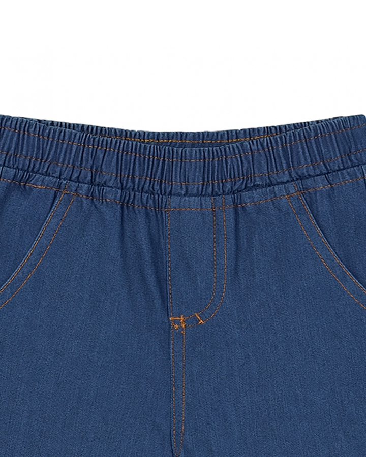 ✅ Diseño: Bermuda con pretina elástica para mejor ajuste, bolsillos funcionales delanteros y costuras decorativas tipo jean.