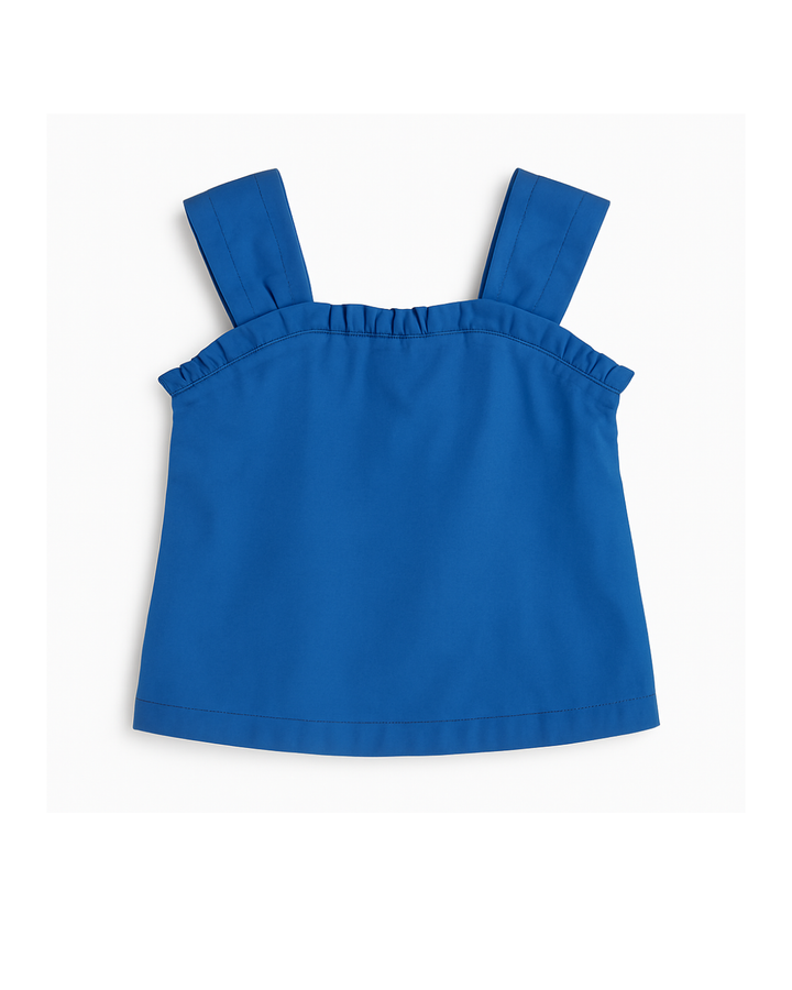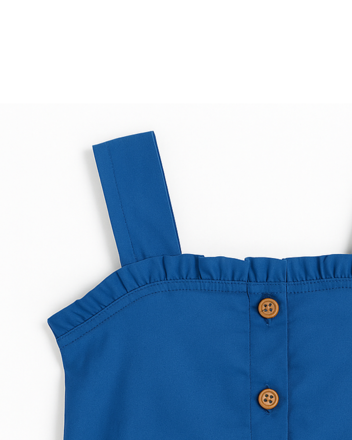 Blusa azul con tiras anchas y botones frontales