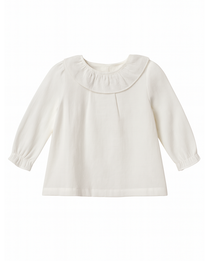 ✅ Diseño: Blusa de manga larga con cuello tipo babero fruncido, corte recto y cierre posterior con botones.