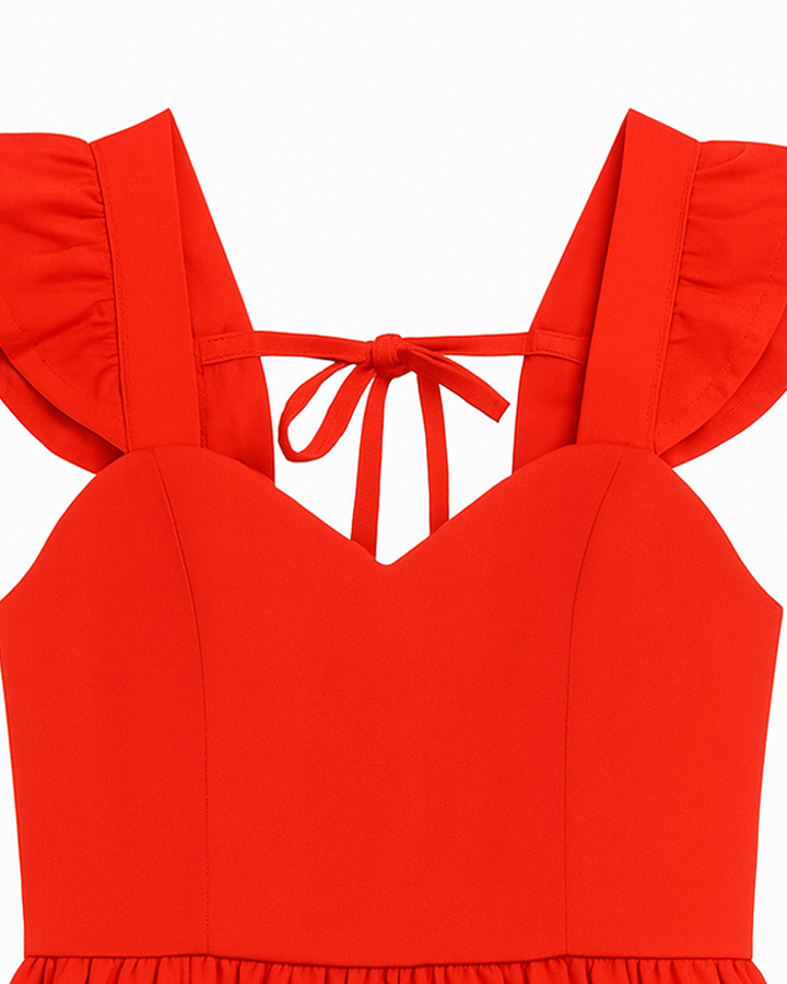 ✅ Diseño: Blusa sin mangas con tirantes anchos y volantes, escote en forma de corazón y amarre decorativo en la parte superior. Espalda con botones funcionales que facilitan el ajuste.