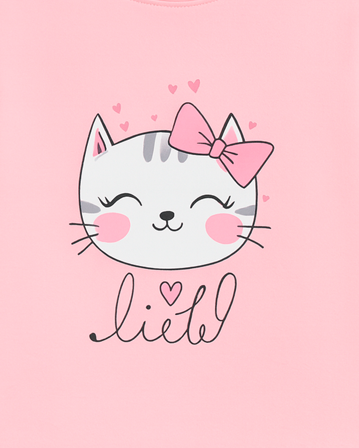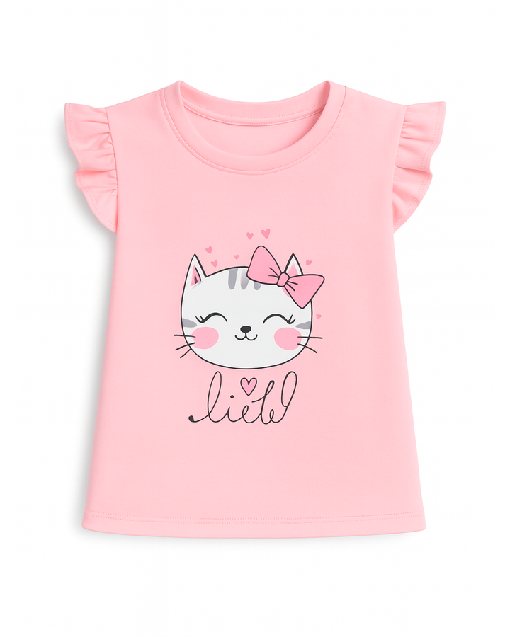 ✅ Diseño: Blusa manga corta con boleros en los hombros y estampado frontal de gatita con la palabra “lieb”.