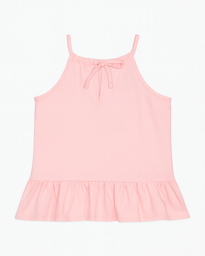 Blusa rosa con tirantes finos y detalle de margaritas bordadas