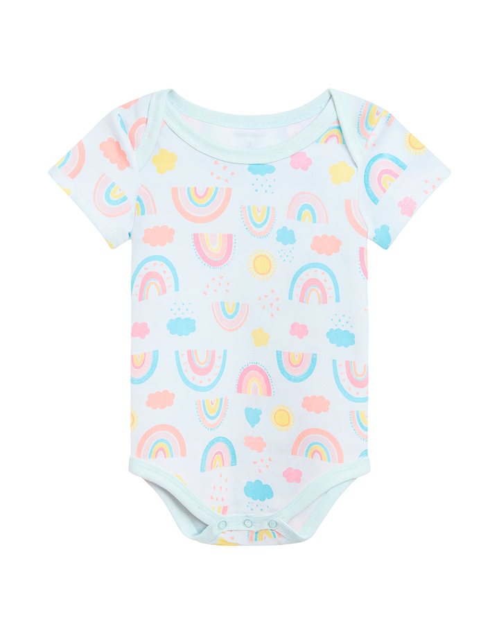 ✅ Color: Base celeste claro con estampado multicolor de arcoíris, soles y nubes.