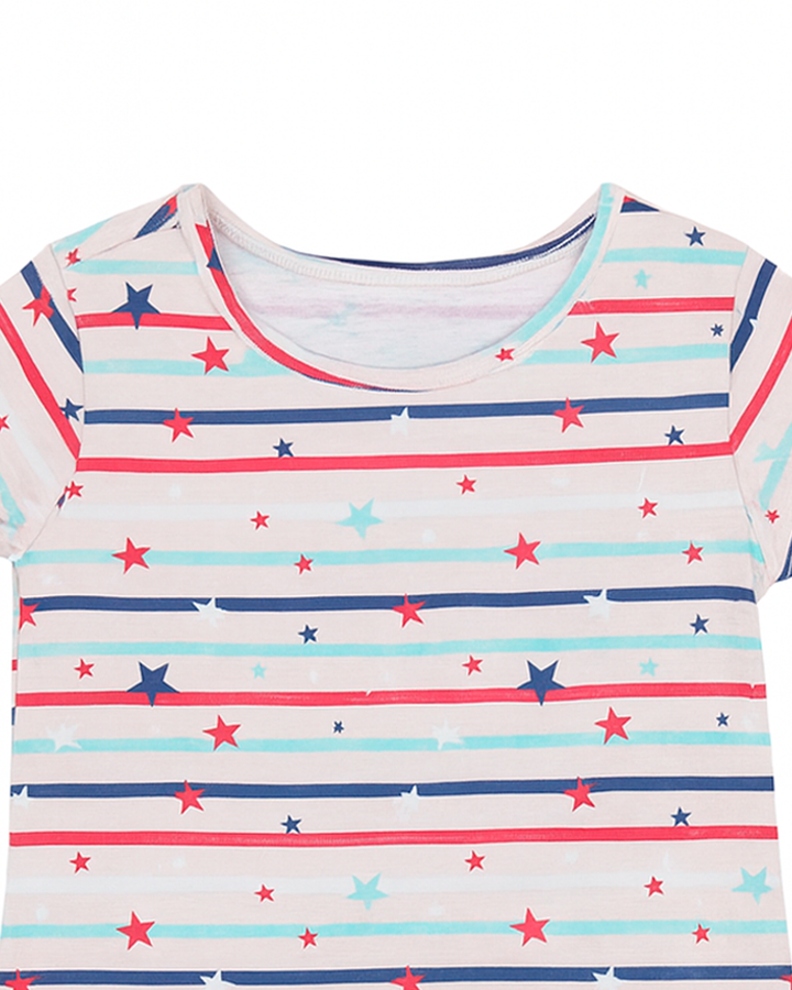 ✅ Diseño: Conjunto de camiseta de manga corta y short, ambos con estampado integral de rayas y estrellas.