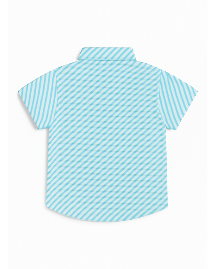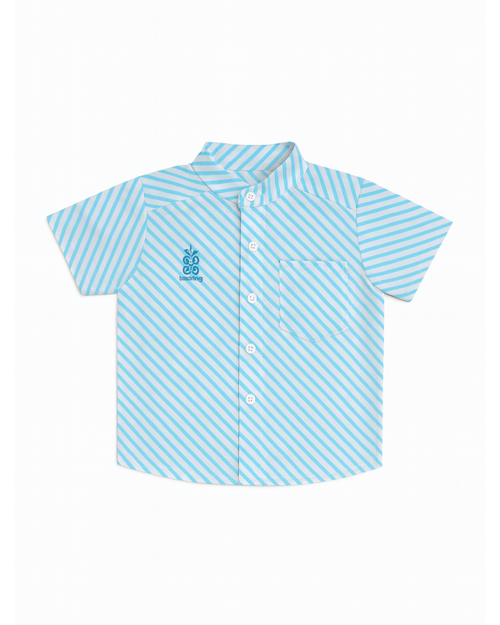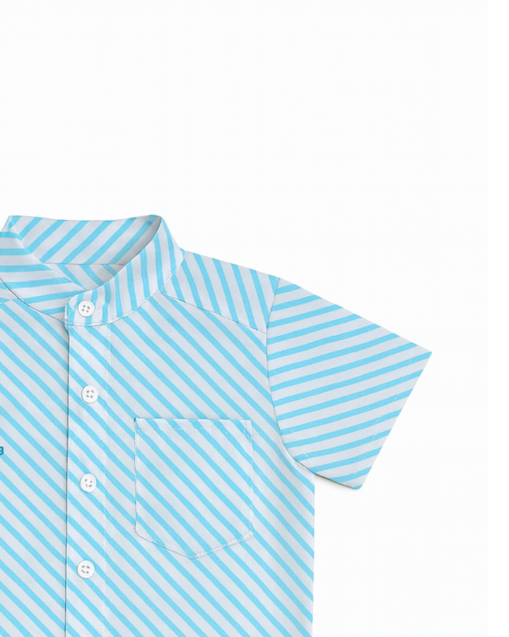 ✅ Diseño: Camisa de manga corta con cuello mao, botones frontales y bolsillo frontal decorativo. Incluye pequeño bordado frontal en tono azul.