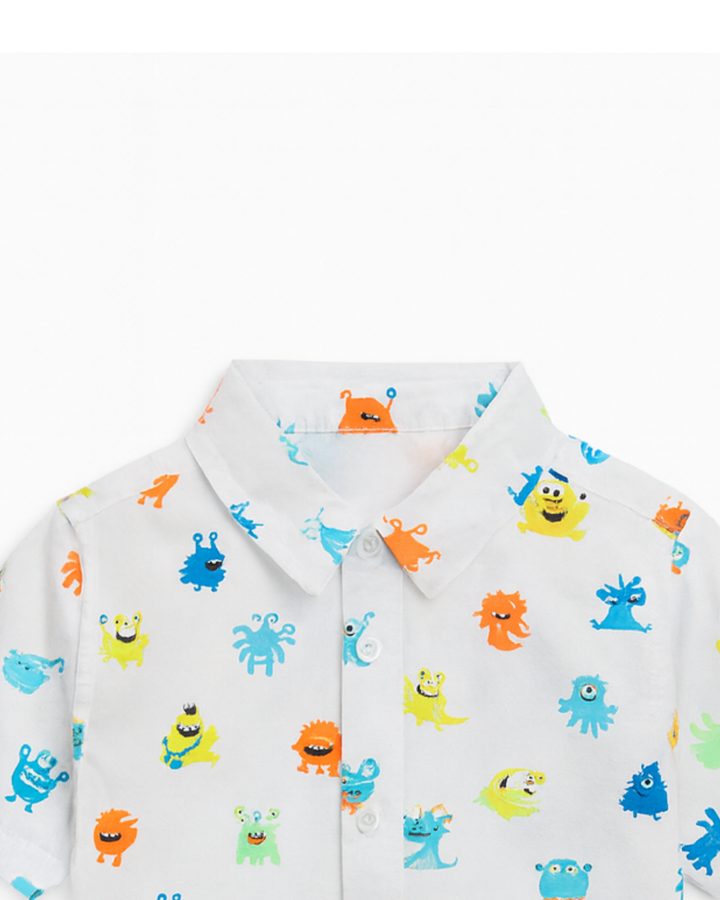 ✅ Color: Base blanca, con un estampado all-over de monstruos en tonos vibrantes de verde brillante, azul, rojo y negro.