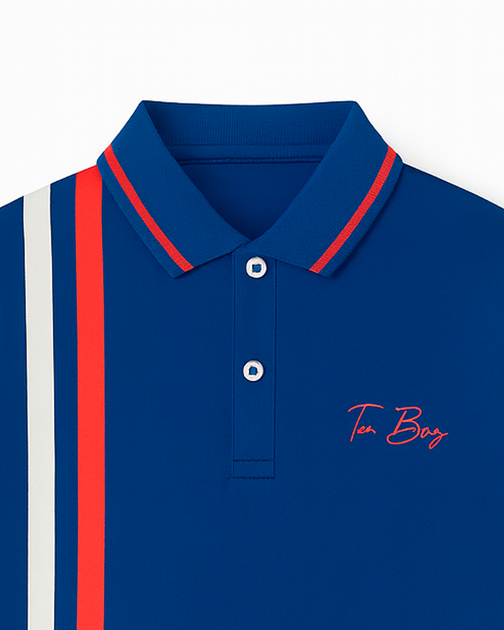 ✅ Color: Azul intenso con franjas verticales en rojo y blanco que resaltan el diseño.