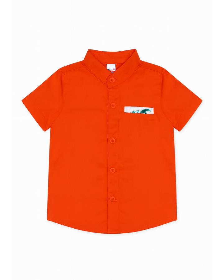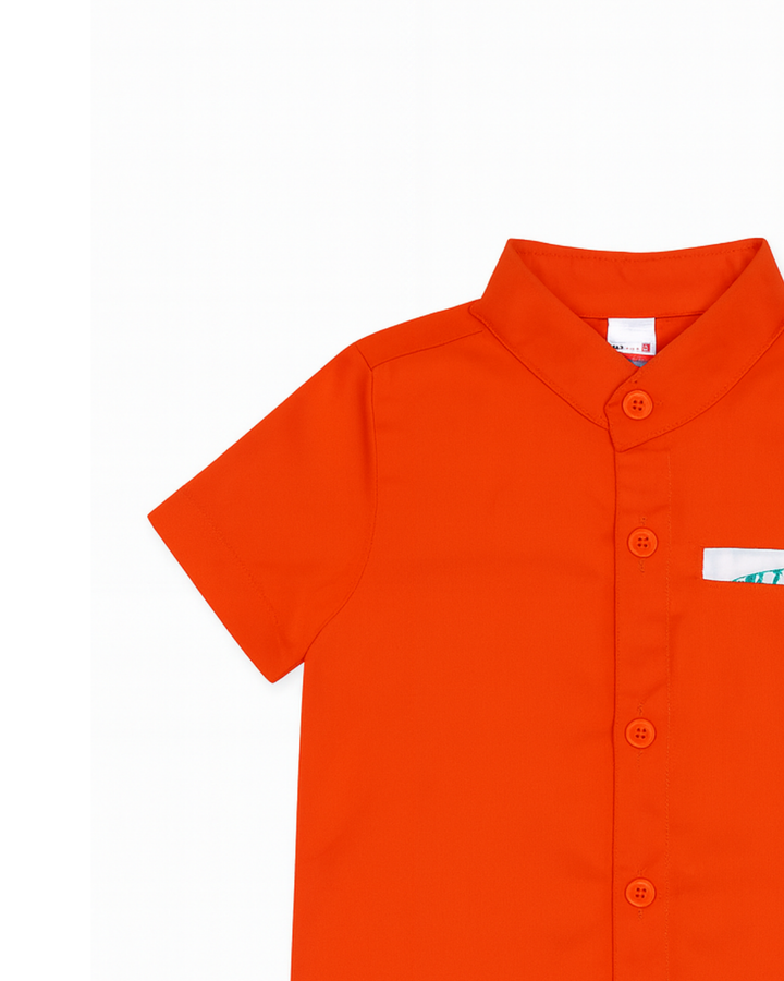 ✅ Diseño: Camisa manga corta con cuello mao, botones frontales y detalle tipo bolsillo decorativo con estampado de ola en tonos verde y blanco.