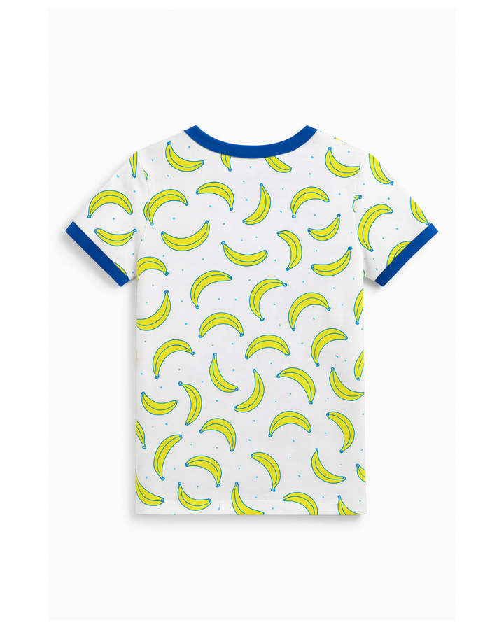 ✅ Color: Blanco puro, con el estampado de bananas y letras en tonos de amarillo, negro y azul/rojo (en las letras).