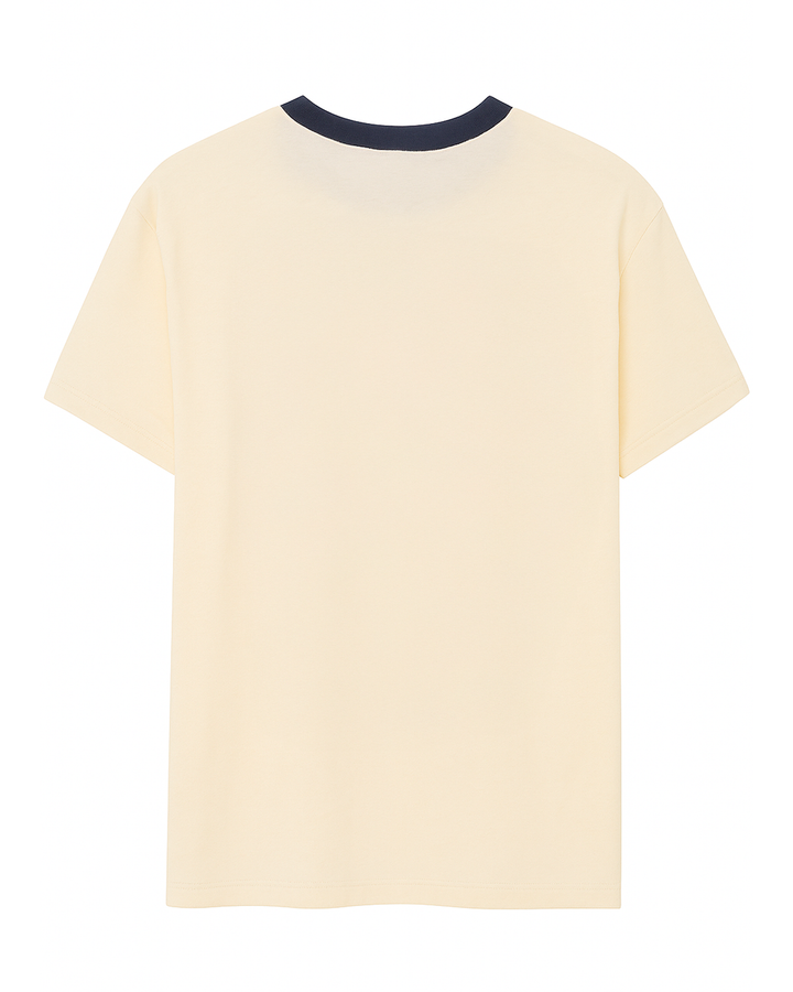 ✅ Color: Beige claro con cuello en contraste azul marino.