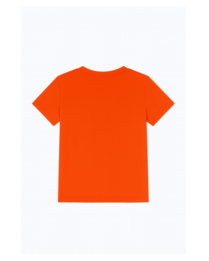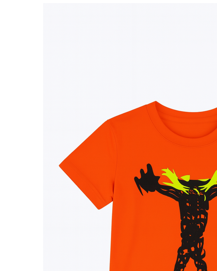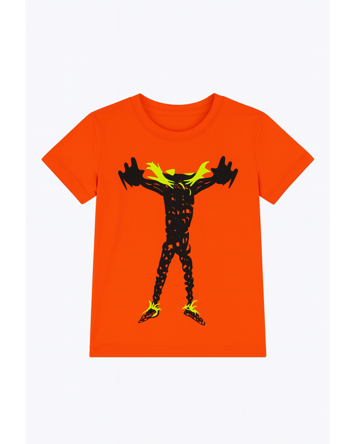 Camiseta naranja estampada con diseño gráfico