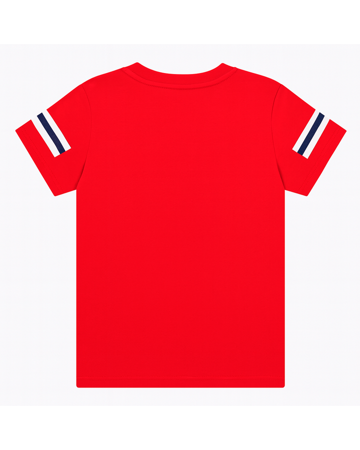 ✅ Color: Rojo vibrante con franjas blancas y azul marino en las mangas.