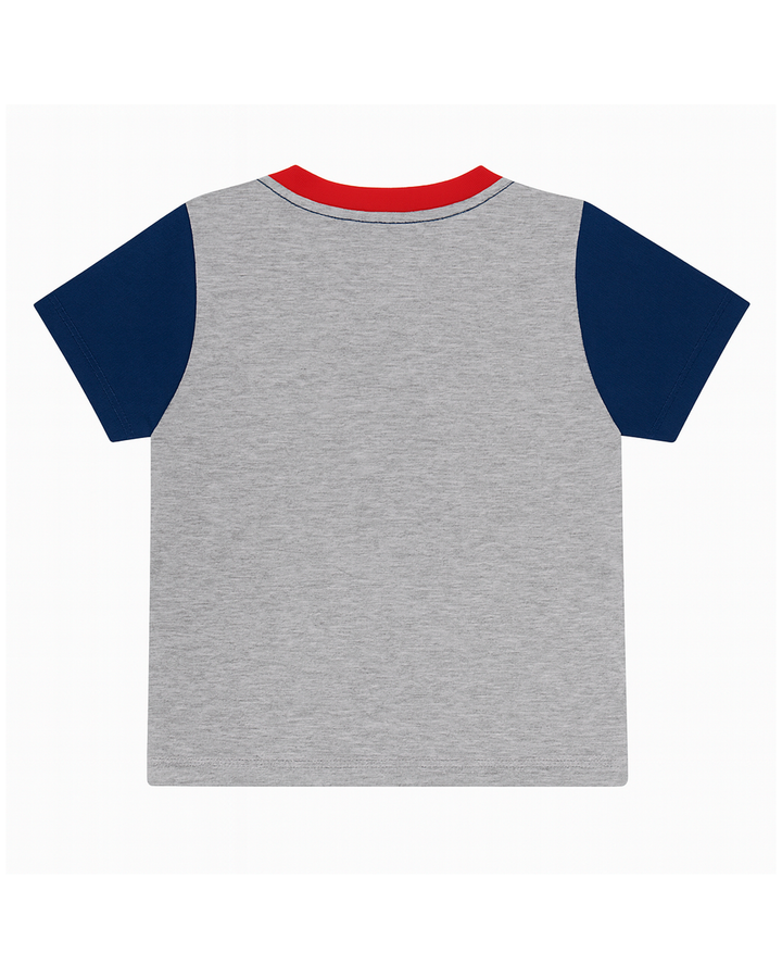 ✅ Color: Gris con mangas azul marino y cuello rojo en contraste.