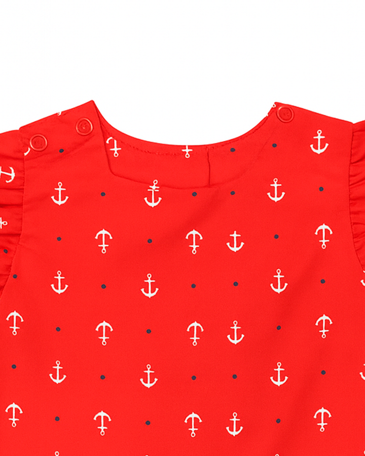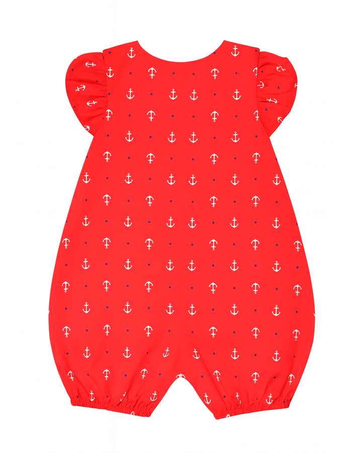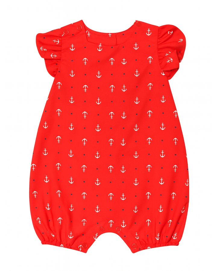 Enterizo rojo con estampado de anclas y mangas con volantes