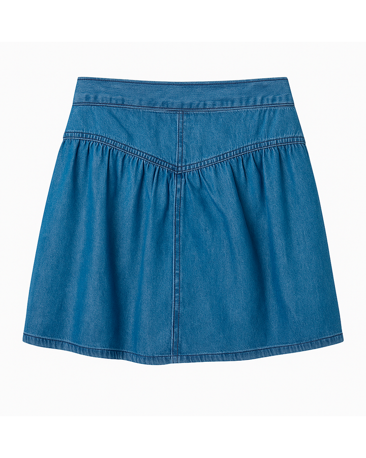 ✅ Diseño: Falda con pretina ancha y corte en forma de “V” que estiliza la figura, con tres botones decorativos al frente.