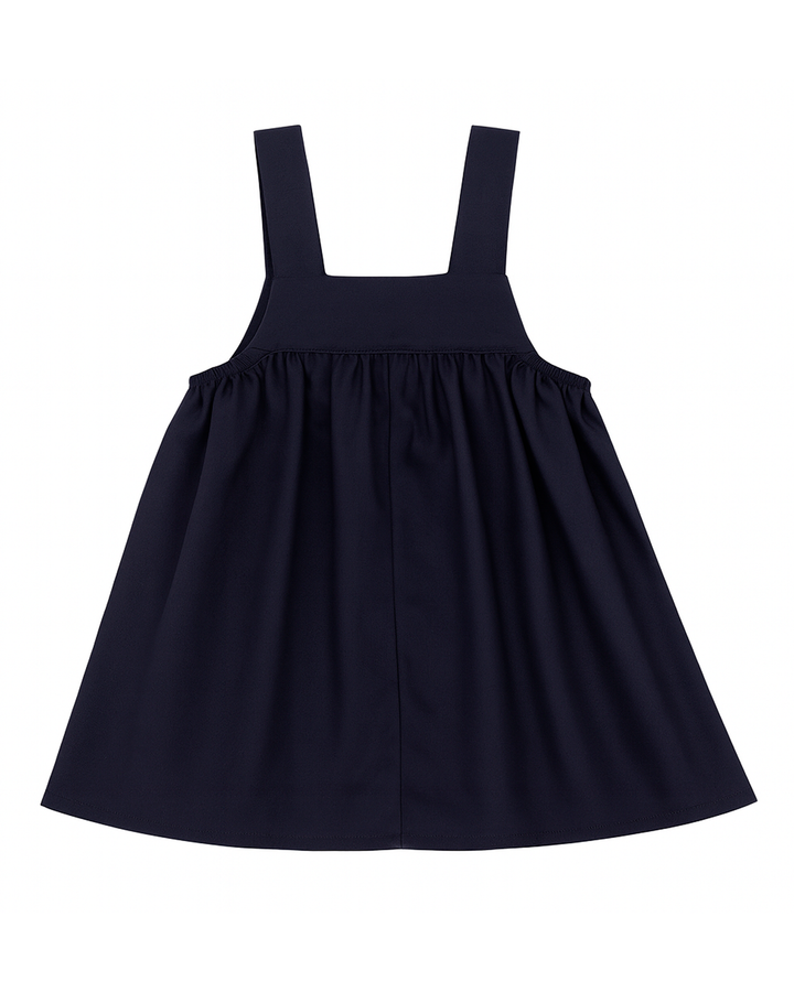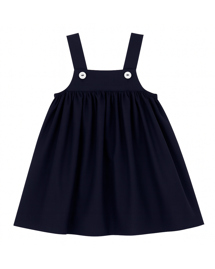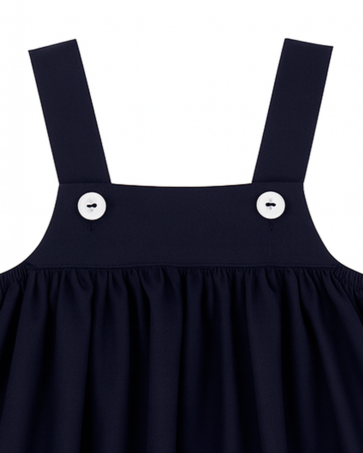 Jardinera jumper azul marino con tirantes y botones decorativos