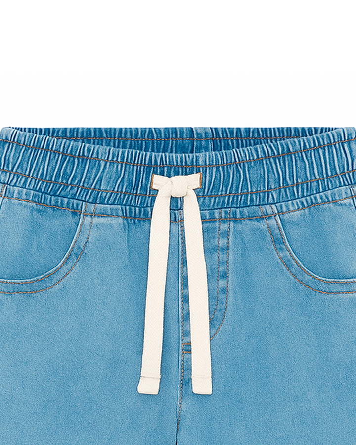✅ Color: Azul claro con costuras a la vista y cordón ajustable blanco.
