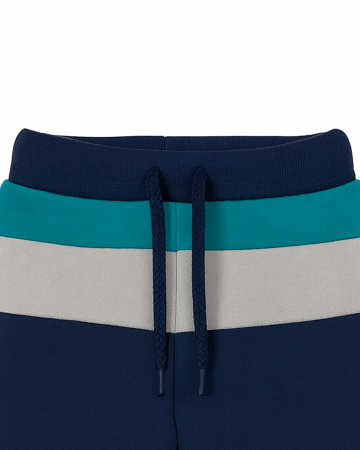 ✅ Detalles adicionales: Los puños en los tobillos son de tela de canalé gris para un mejor ajuste. El cordón es azul marino.