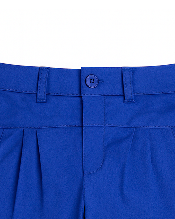 Diseño: Pantalón clásico con pliegues frontales y pretina semielástica en la parte trasera para mejor ajuste.