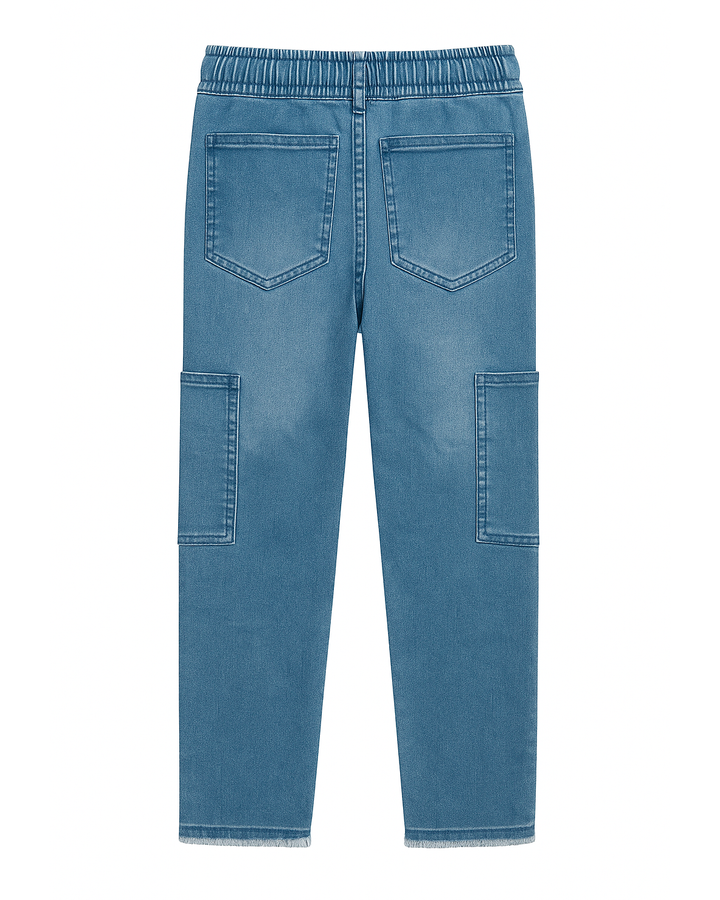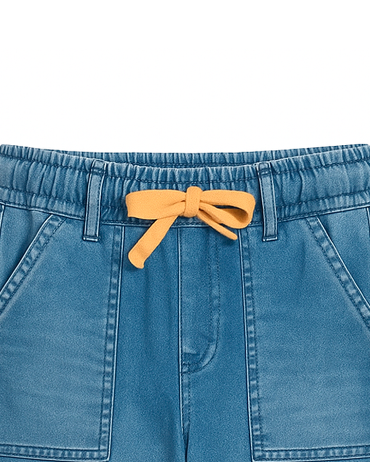Pantalón Infantil Denim Cargo con Cordón Mostaza
