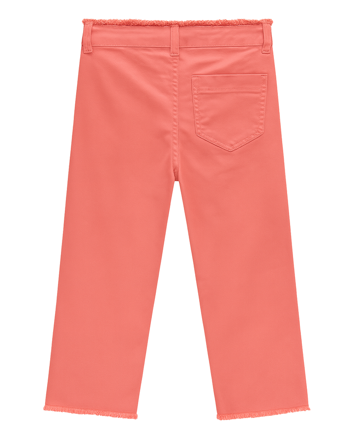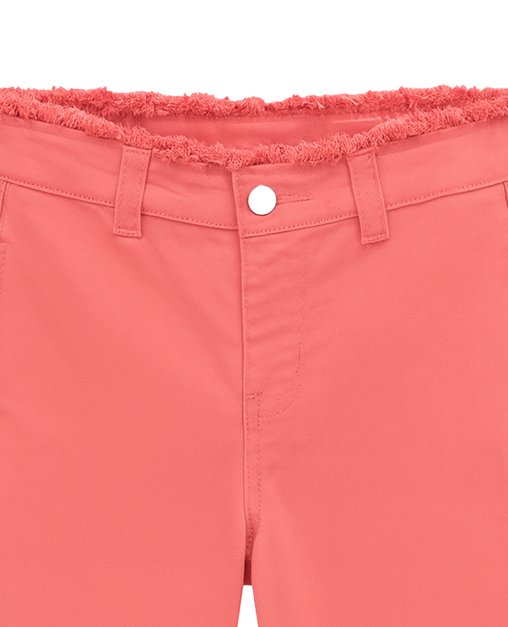 ✅ Diseño: Pantalón de corte recto tipo culotte con terminaciones deshilachadas en cintura y bota, que le dan un aire juvenil y relajado. Incluye pretina con pasadores, botón metálico en el frente y un bolsillo trasero de parche.