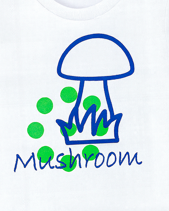 ✅ Estampado: Divertido motivo de hongo acompañado de la palabra “Mushroom”, que aporta un toque alegre y moderno.