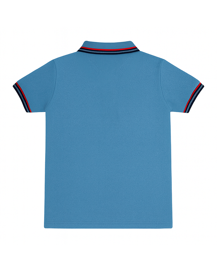✅ Color: Azul medio con ribetes en rojo y azul marino en cuello y mangas.