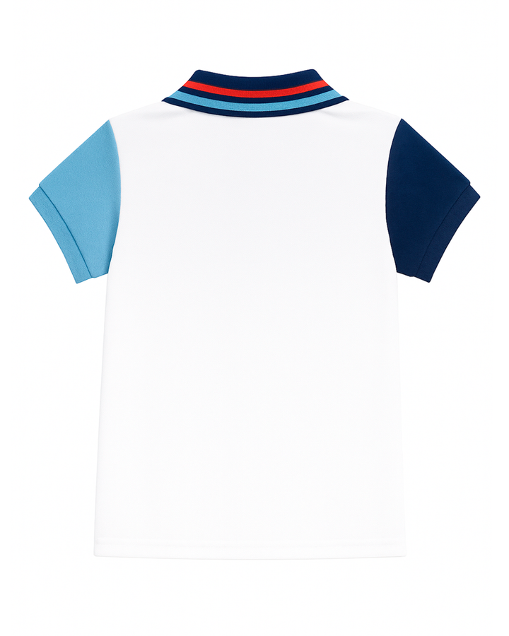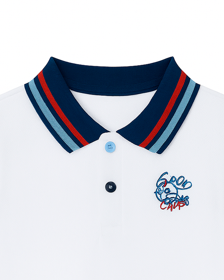 Polo Infantil Blanco con Detalles Azul y Rojo “Good Chips”