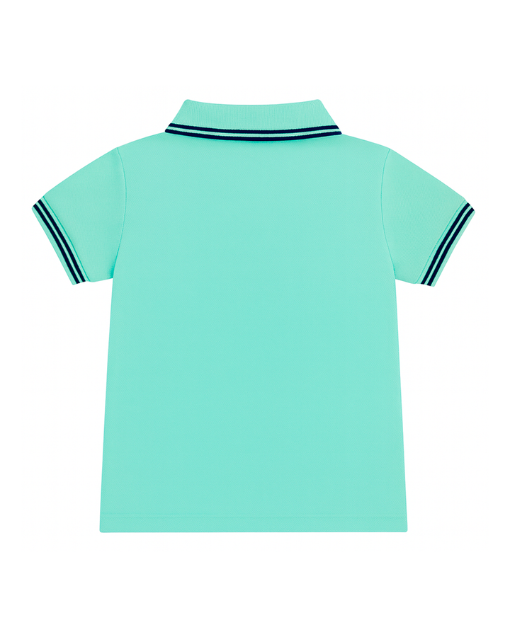 ✅ Diseño: Polo de manga corta con bordado “Tomaticos” en la manga y detalles en contraste en cuello y puños.