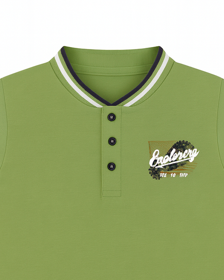 ✅ Diseño: Polo tipo Henley con tapeta de tres botones y cuello tejido con líneas decorativas. Estampado frontal con la palabra Energy y motivo natural.