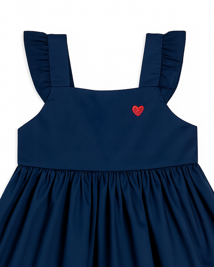 ✅ Diseño: Vestido sin mangas con tirantes anchos adornados con volantes, detalle de corazón bordado en el pecho y frunce en la cintura que aporta volumen.