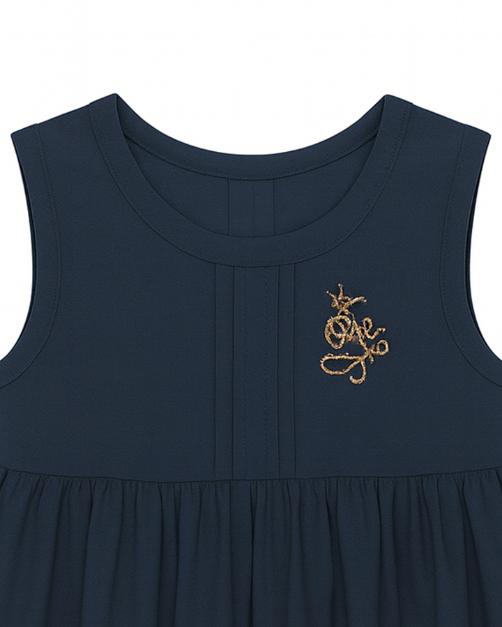 ✅ Diseño: Vestido sin mangas con detalle de pinzas verticales en el pecho y delicado bordado dorado en forma de cuerda vaquera.