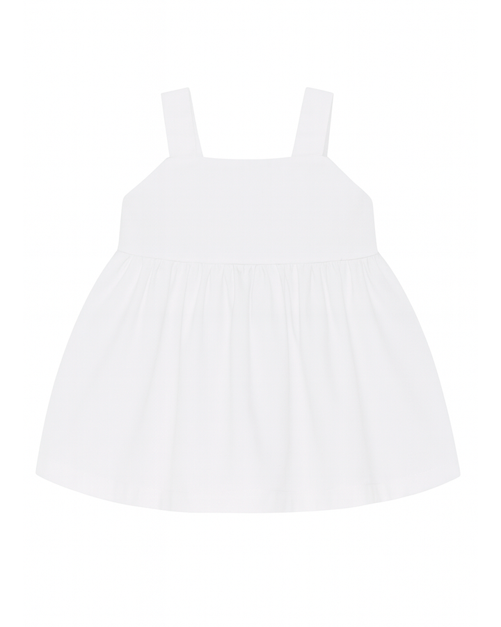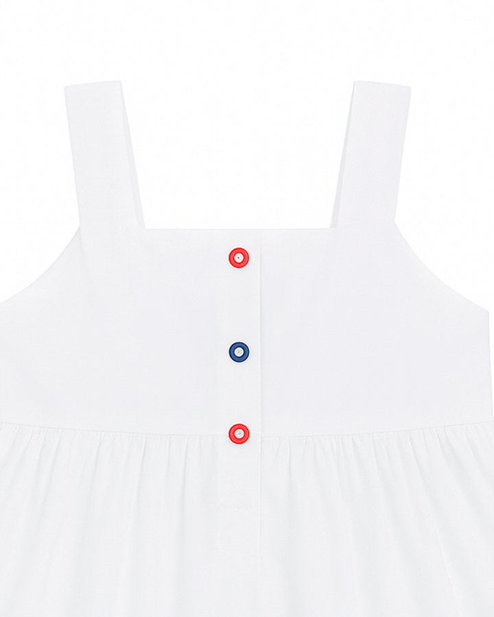 ✅ Diseño: Vestido sin mangas con tirantes anchos y botones frontales decorativos en contraste. Falda con caída suave y estampado de veleros en la parte inferior que llenan de diversión el look.