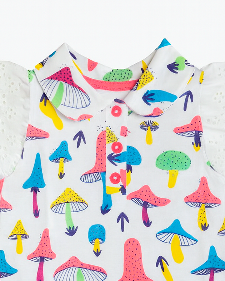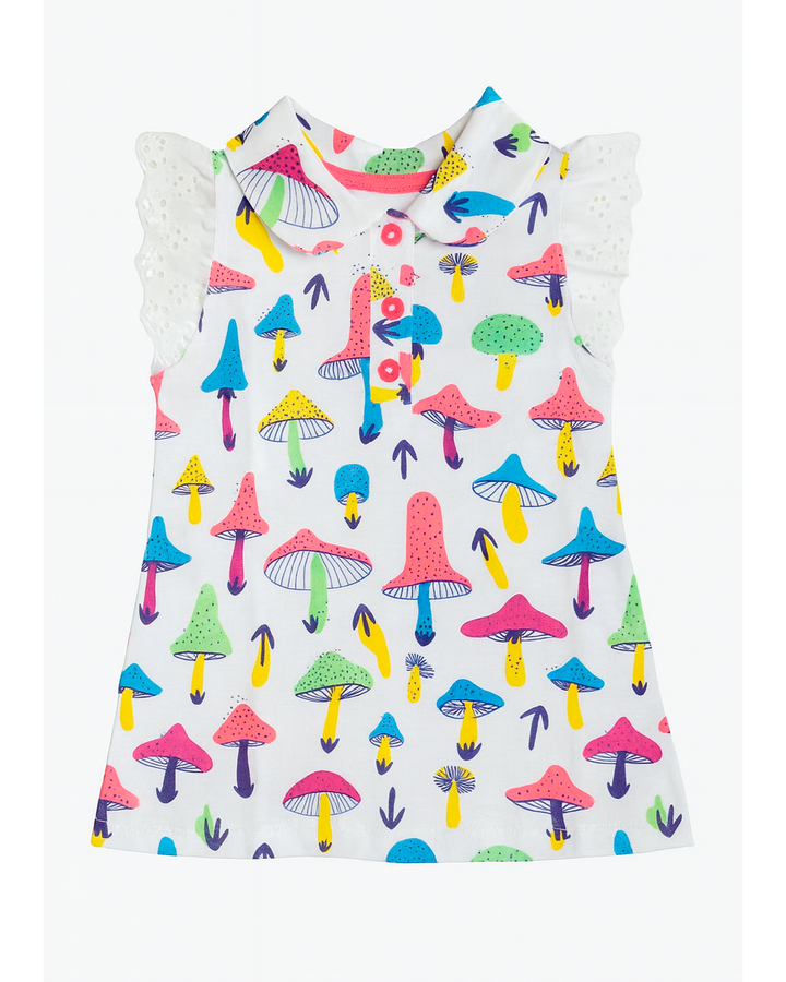 ✅ Color: Base blanca con estampado multicolor de hongos en tonos vibrantes.