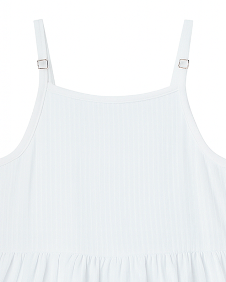 Vestido blanco largo con tirantes ajustables y volantes