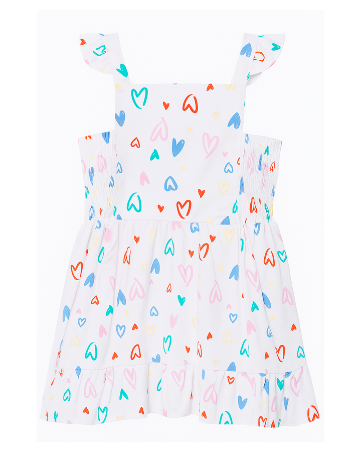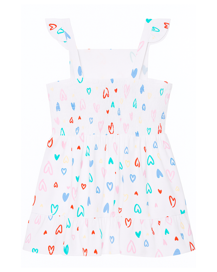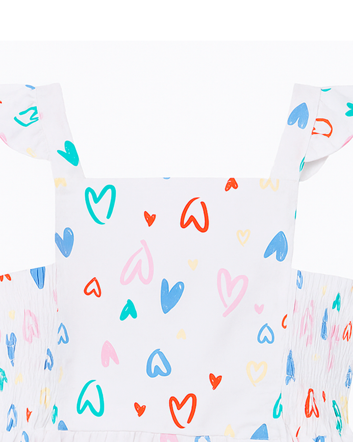 Vestido Infantil Blanco con Estampado de Corazones Multicolor