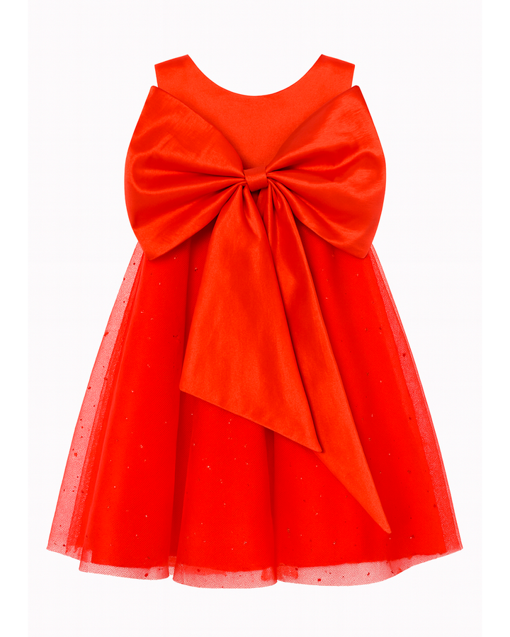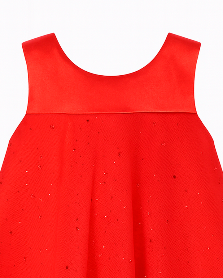 ✨ Vestido rojo con moño removible y tul brillante ✨